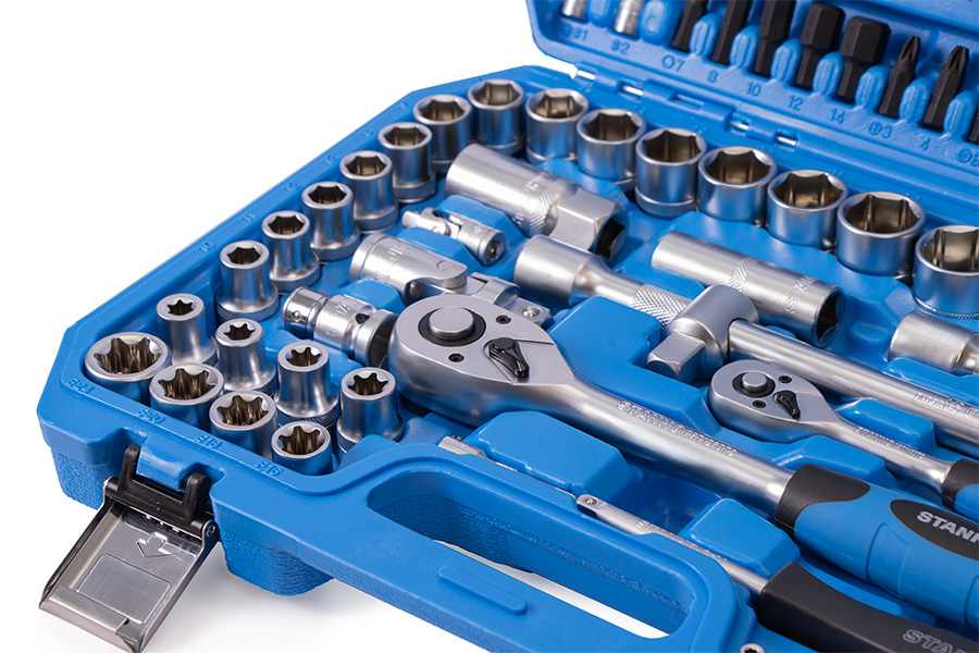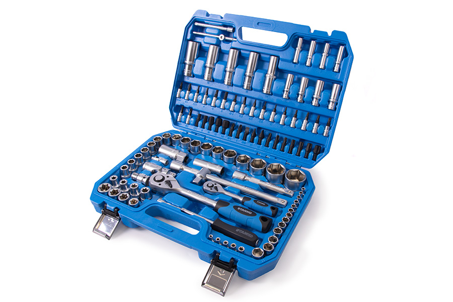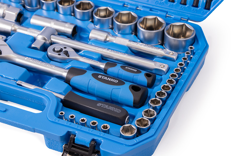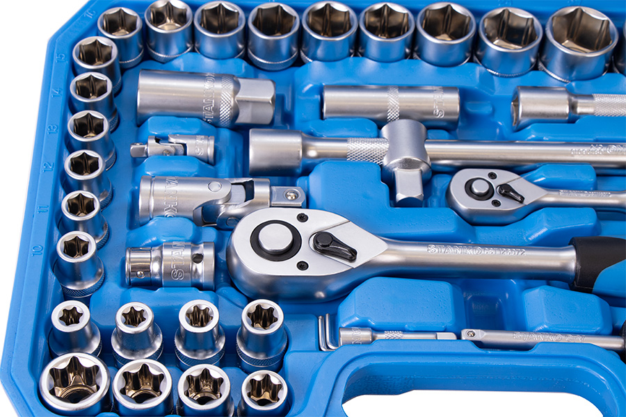 Универсальный набор инструментов 108 предметов от бренда STANKO в первую очередь предназначен для монтажных, демонтажных и ремонтных работ. Может применяться как в автосервисах, мастерских и СТО, так и в гараже или дома для бытового использования.